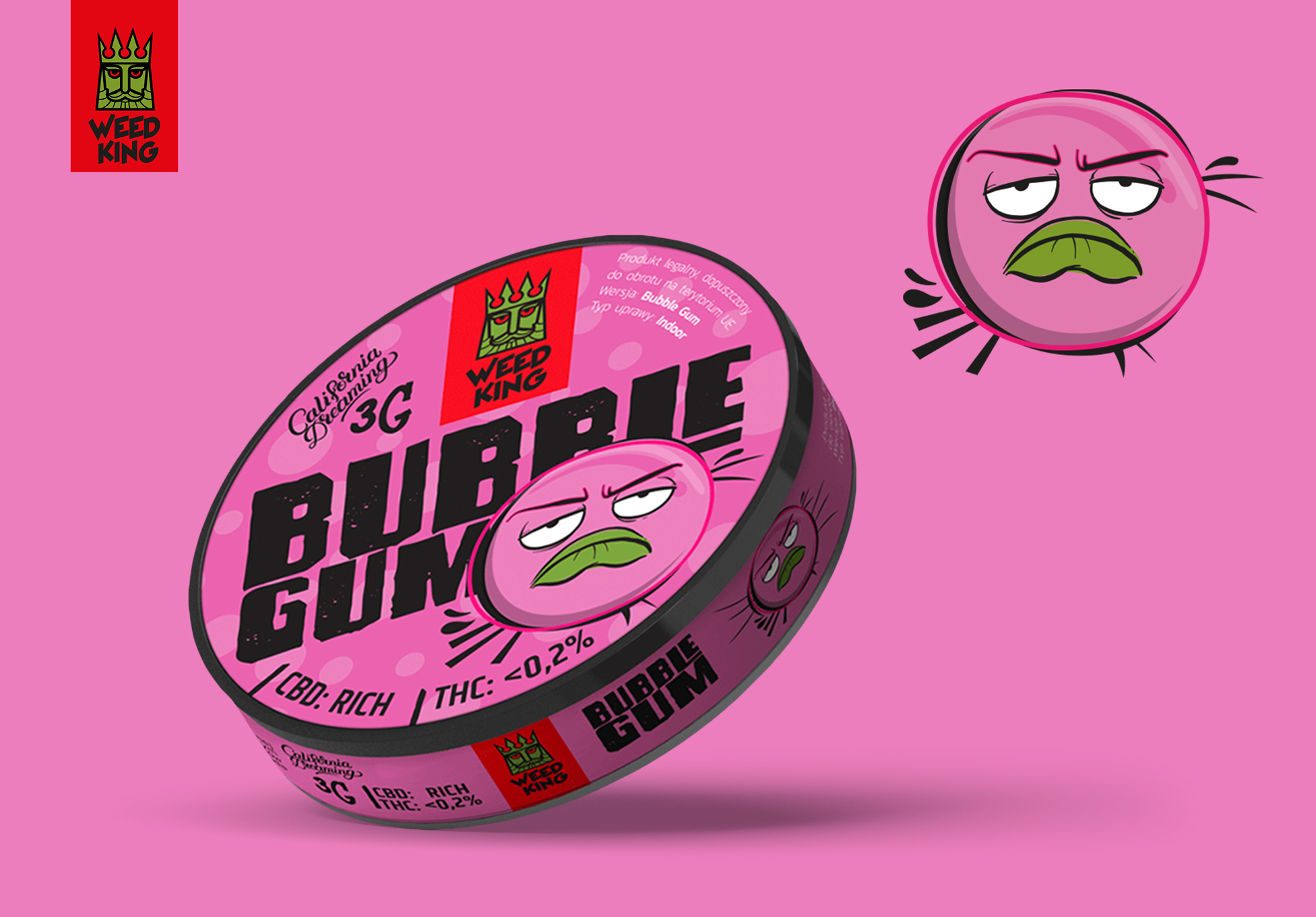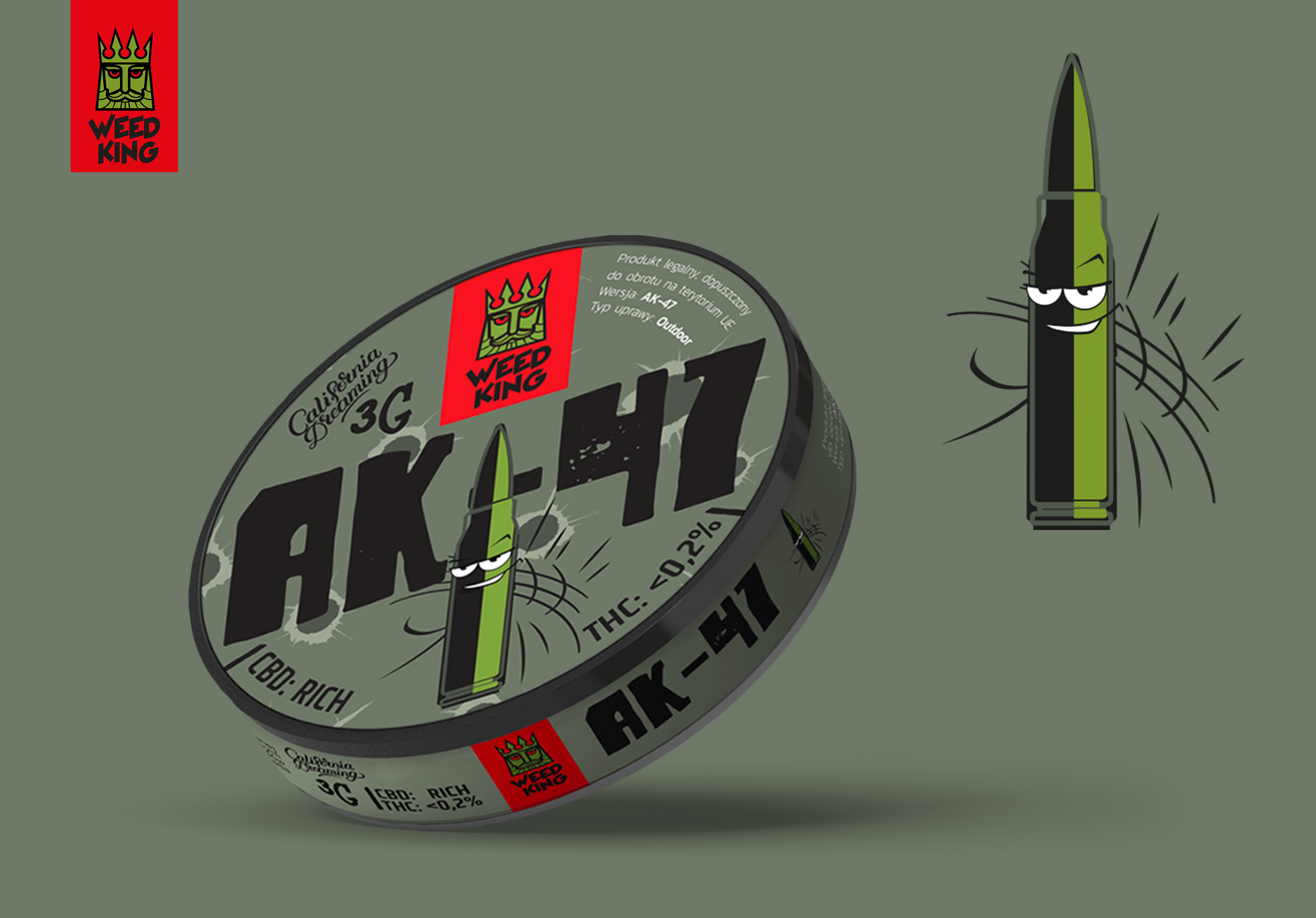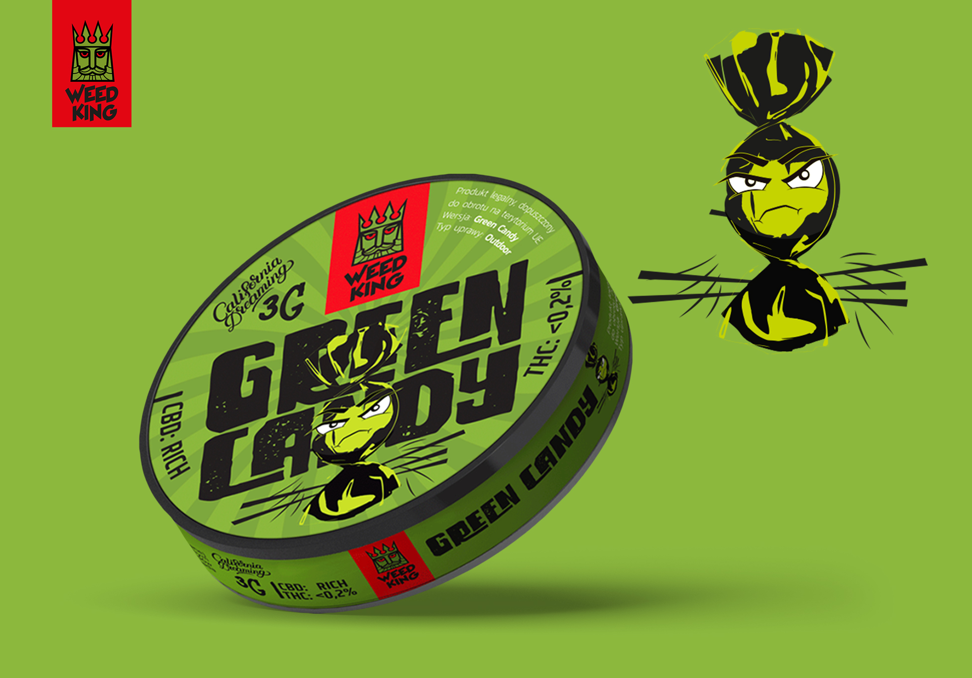 Z przyjemnością powołaliśmy do życia kolejny brand. Weed King to marka z branży konopnej, która lubi wyznaczać nowe trendy. Naszym zadaniem było trafić do ludzi przebojowych i niepokornych. Rozrywkowy i buntowniczy charakter marki oddaliśmy za pomocą zawadiackich postaci na opakowaniach. Całości dopełnia logotyp, z którego spogląda zielony król z czerwonymi oczami – pozdro dla kumatych, jak mawia młodzież.