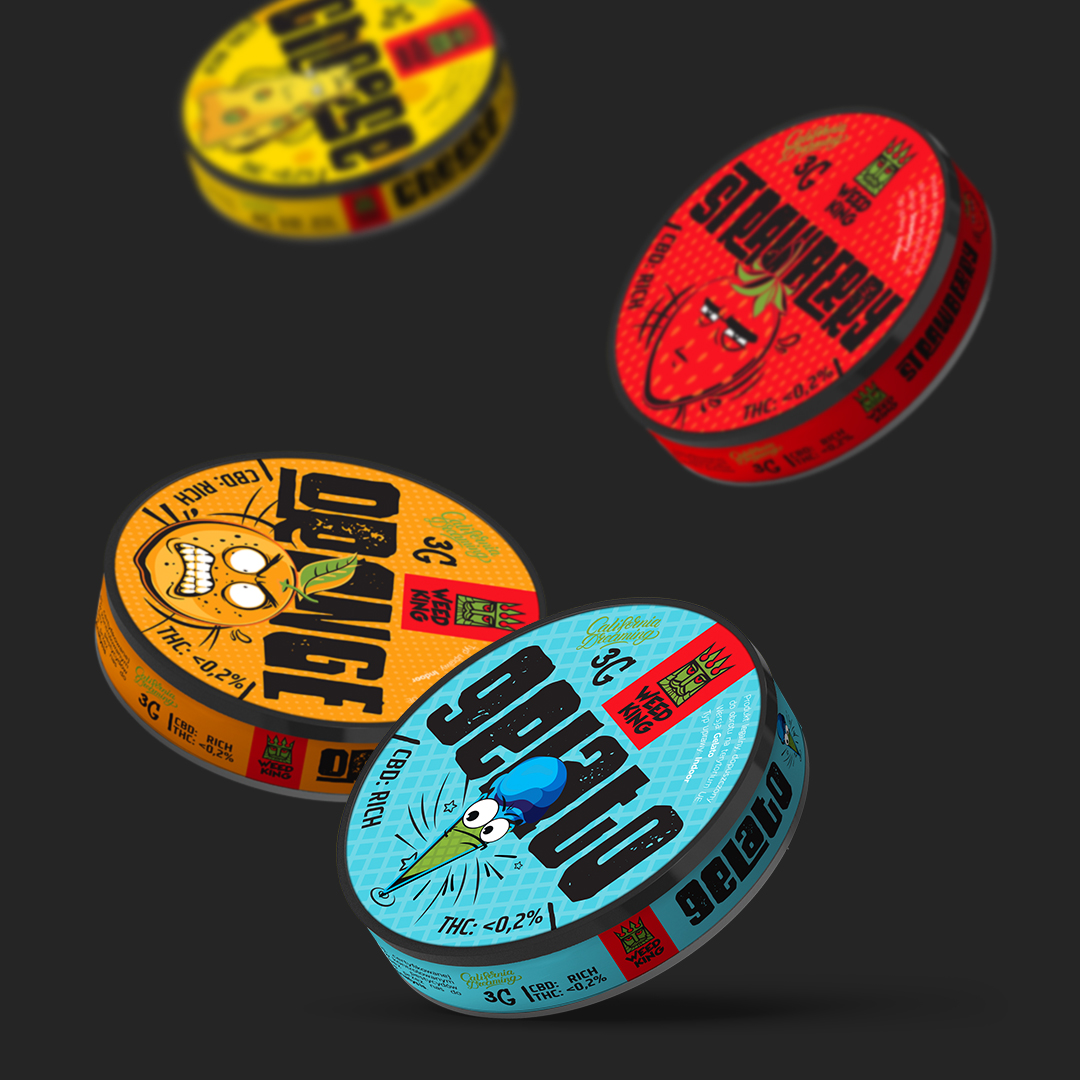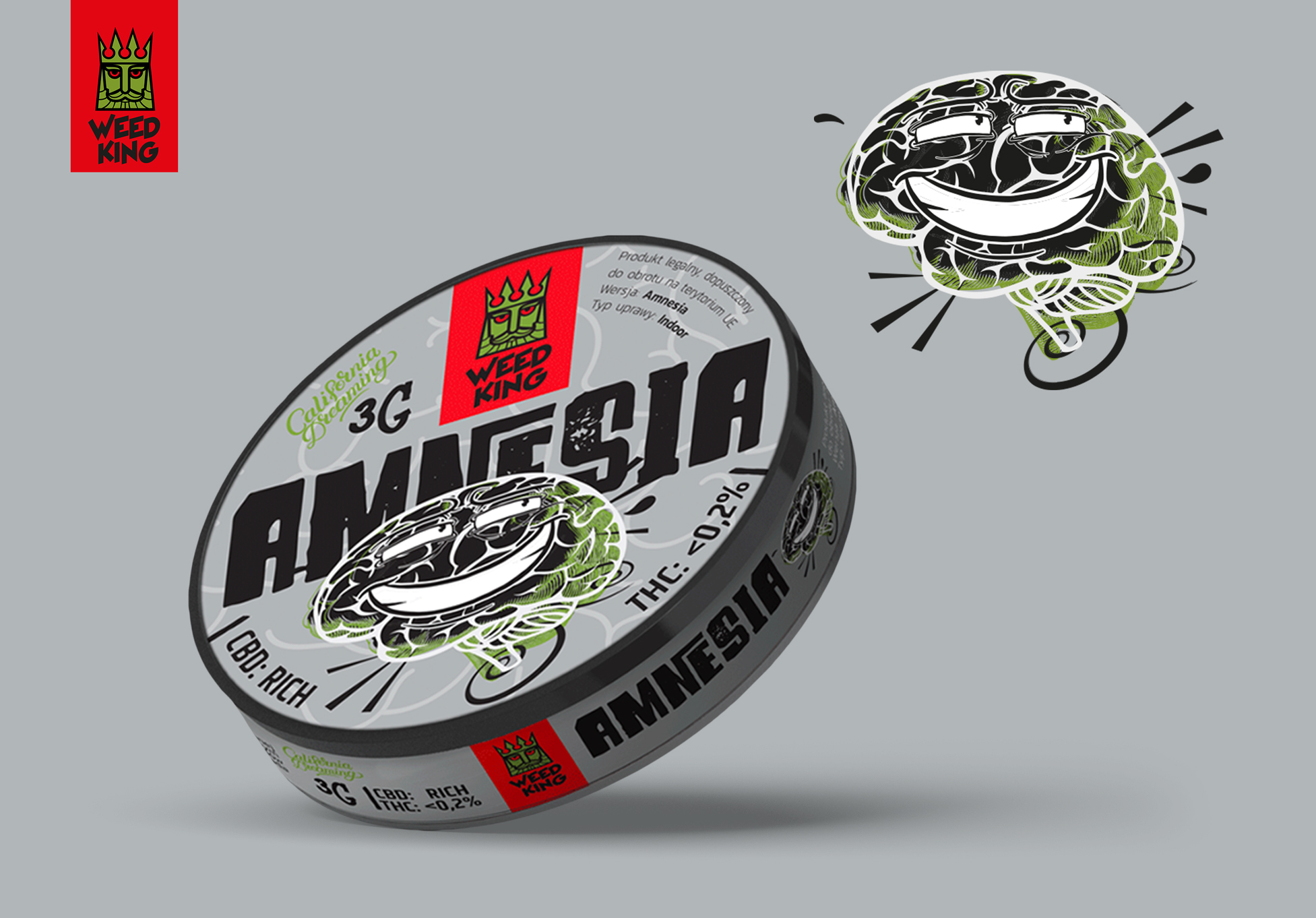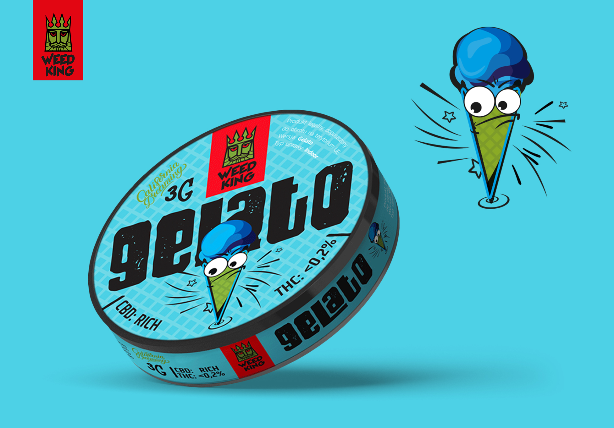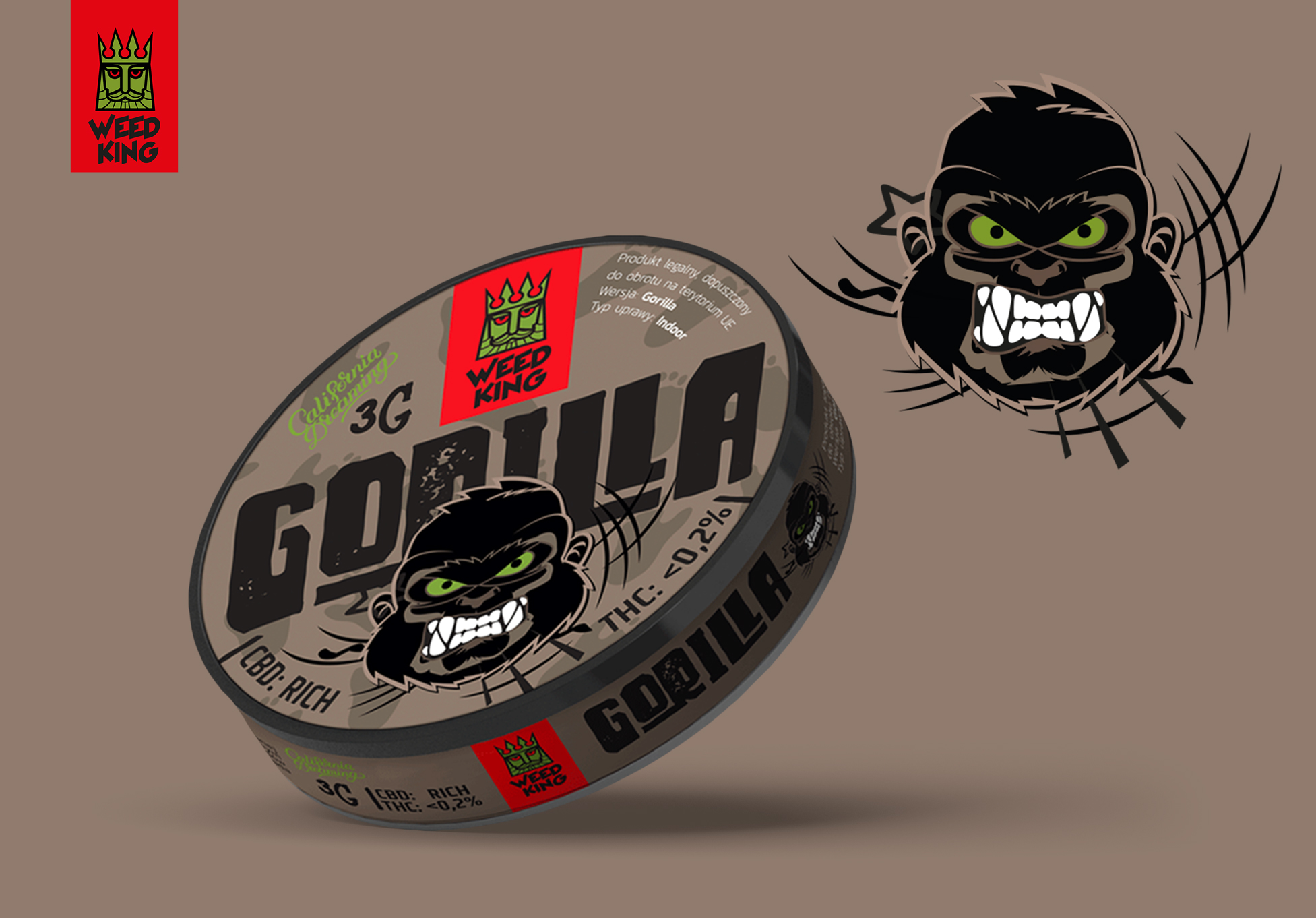 Z przyjemnością powołaliśmy do życia kolejny brand. Weed King to marka z branży konopnej, która lubi wyznaczać nowe trendy. Naszym zadaniem było trafić do ludzi przebojowych i niepokornych. Rozrywkowy i buntowniczy charakter marki oddaliśmy za pomocą zawadiackich postaci na opakowaniach. Całości dopełnia logotyp, z którego spogląda zielony król z czerwonymi oczami – pozdro dla kumatych, jak mawia młodzież.
